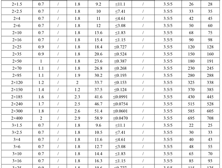 1、正常运行时电缆导体最高温度不超过90℃;